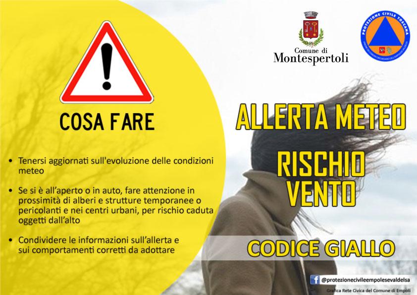 L'Allerta in corso Codice GIALLO per rischio VENTO su tutto il territorio dell'Unione dei Comuni Circondario dell'Empolese Valdelsa è prolungata fino alla tarda mattinata di domani Mercoledì 1 marzo 2023.