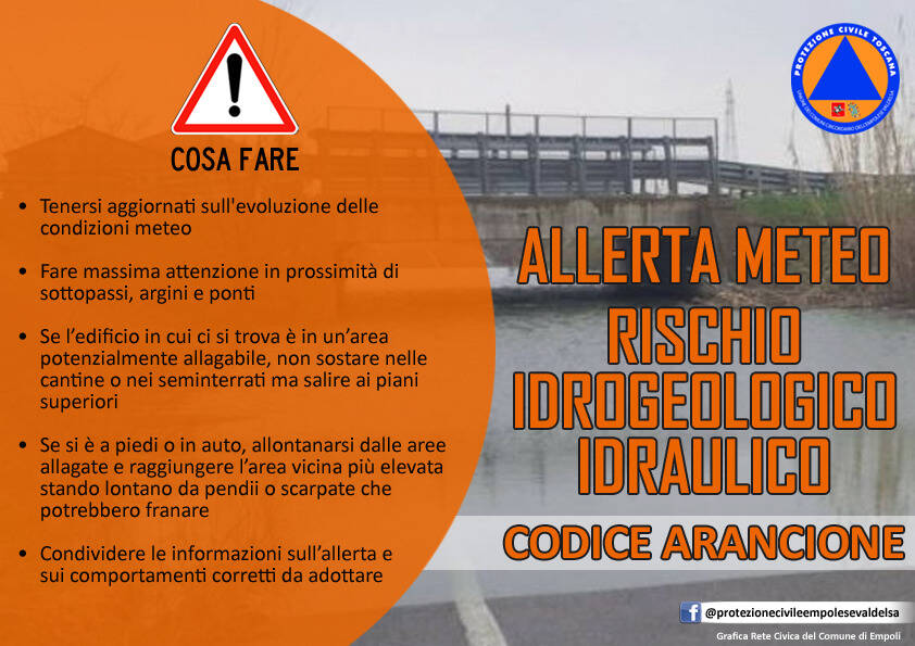 - l'Allerta passerà in CODICE ARANCIONE per tutta la giornata di domani.