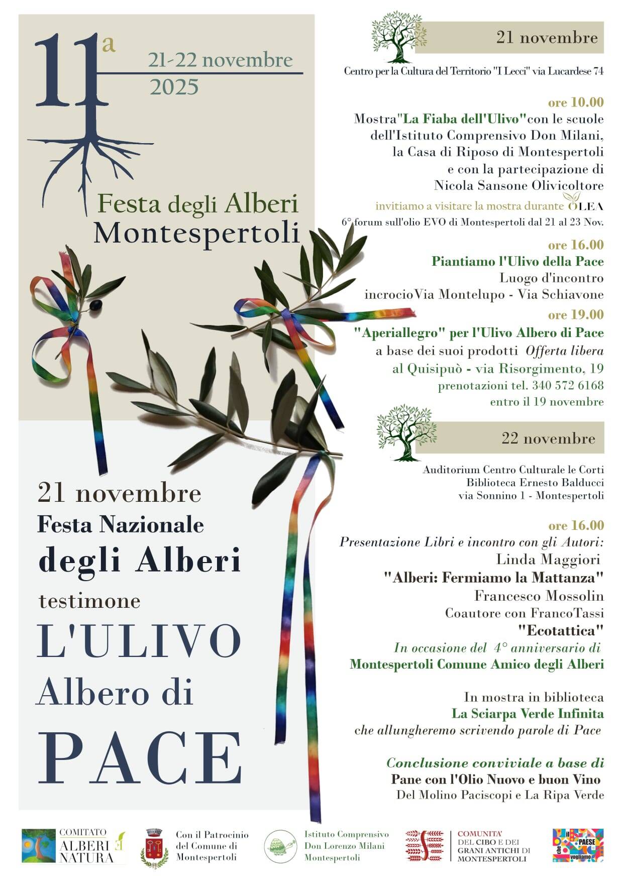 La manifestazione si svolgerà venerdì 21 e sabato 22 novembre 2025, con un’attenzione speciale per l’Ulivo, scelto come testimone e simbolo di pace, custode di memoria e identità per le colline di Montespertoli. Un omaggio che richiama una tradizione consolidata.