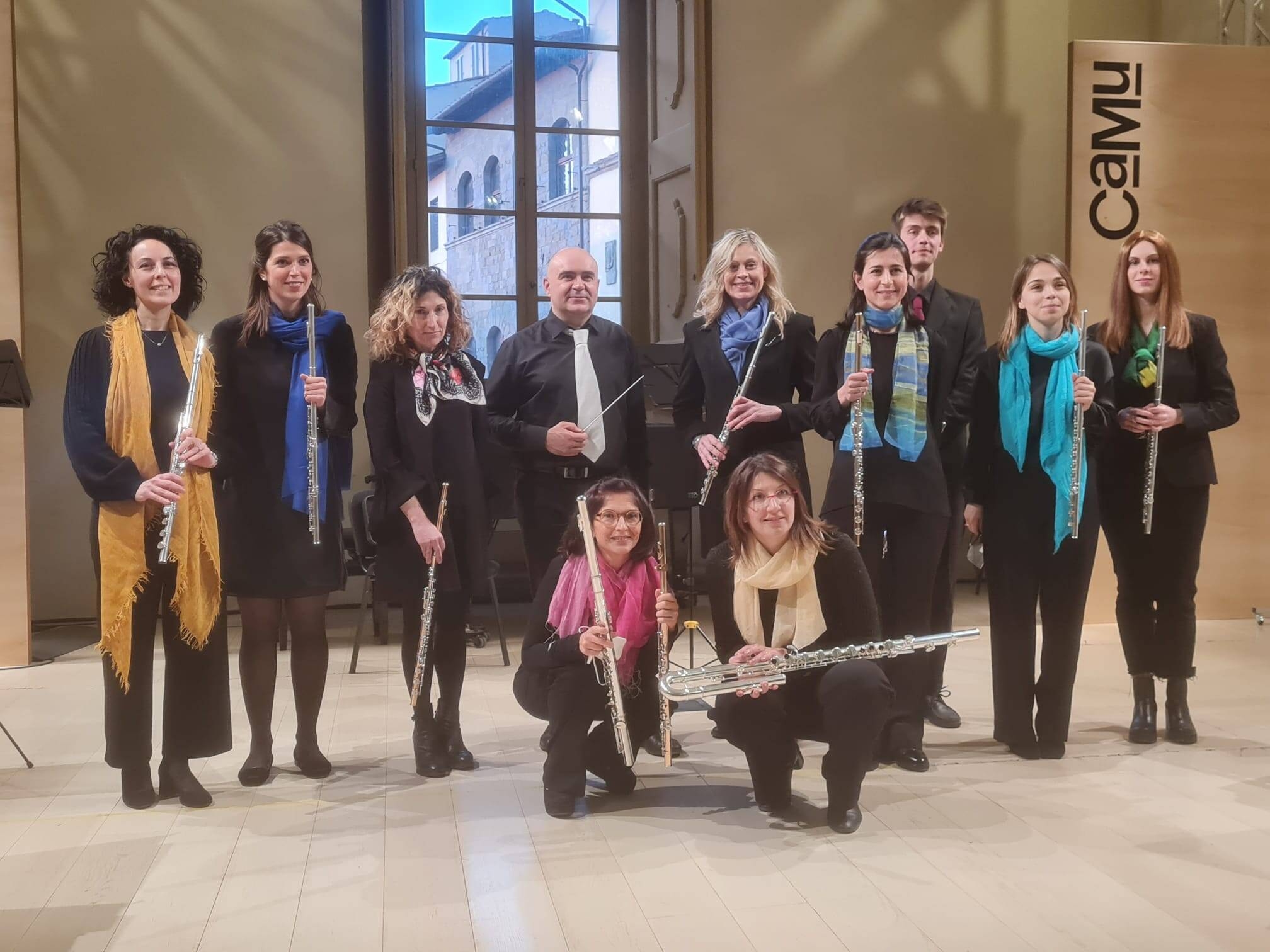 Alle ore 21.00 al Topical della Casa del Popolo di Montespertoli, si terrà un Concerto dello stesso Arezzo Flute Ensemble al completo diretto da Andrea Meucci che si esibirà in un repertorio che spazia da celibri melodie classiche a colonne sonore di film e film d’animazione. L’ingresso al concerto è gratuito.