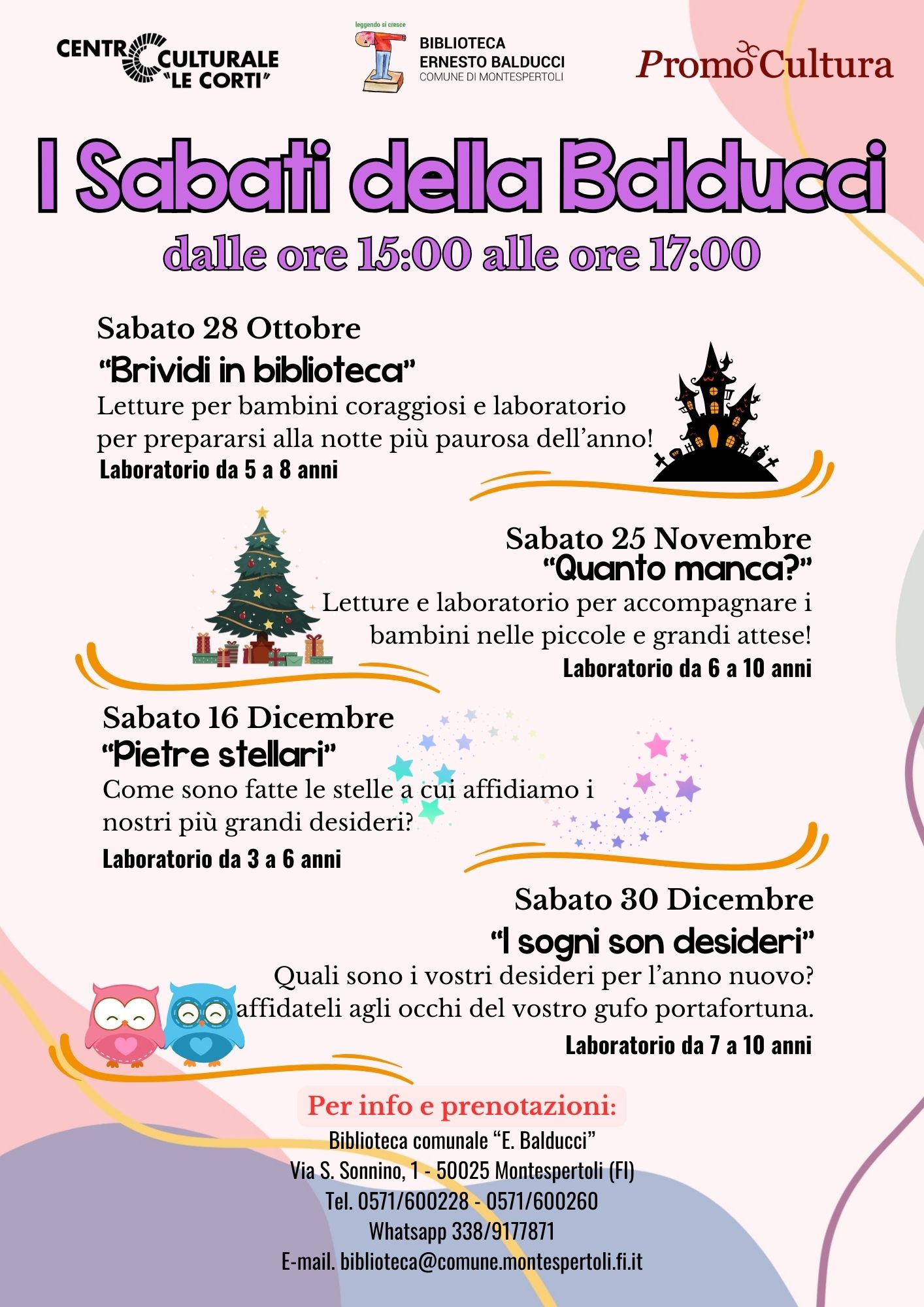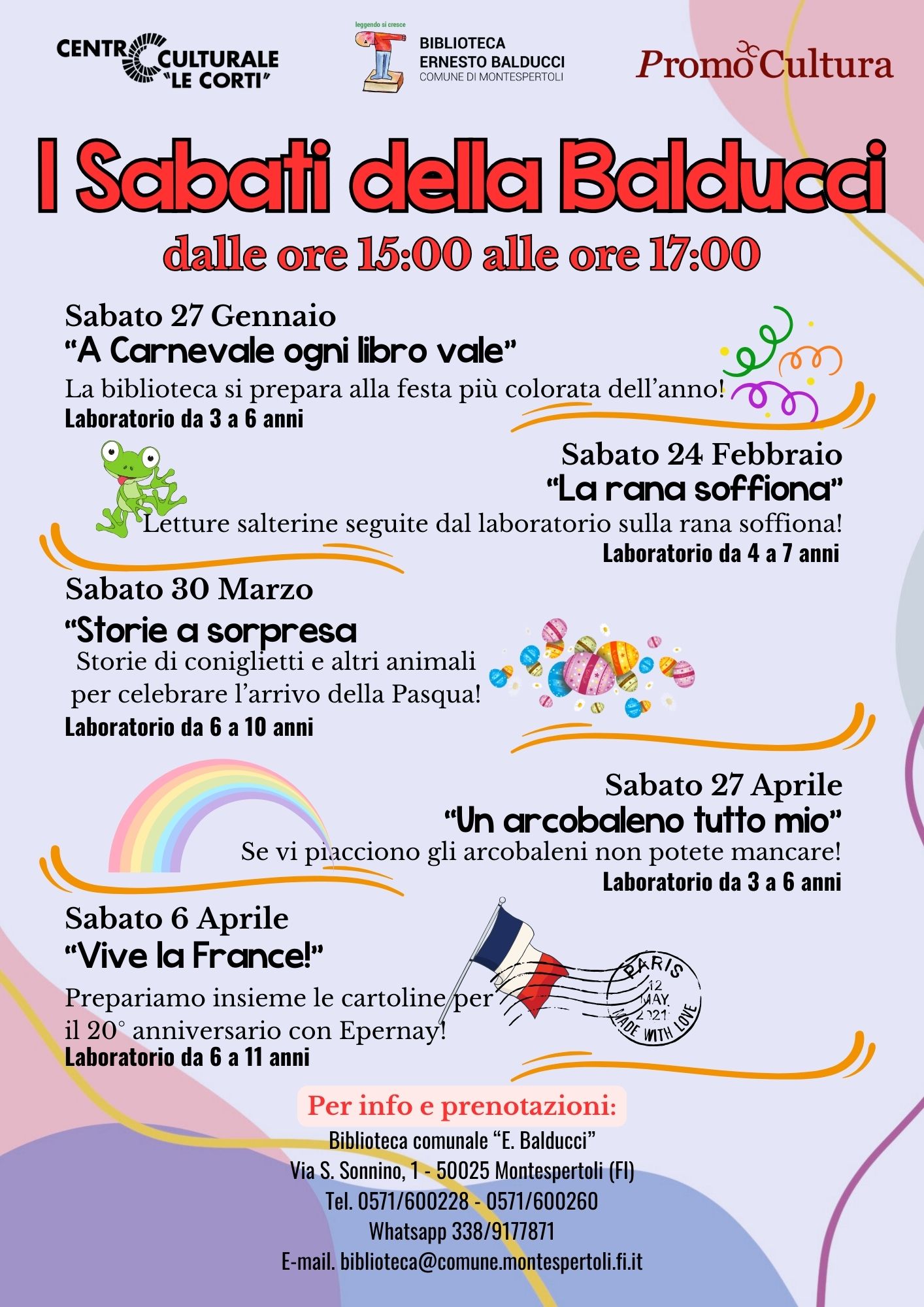 Alla Biblioteca E. Balducci di Montespertoli un'ampia varietà di coinvolgenti laboratori saranno organizzati per tutto l'anno. Questi eventi sono pensati per arricchire la conoscenza e stimolare la creatività, rappresentando un'opportunità straordinaria per le famiglie con bambini di scoprire la biblioteca.