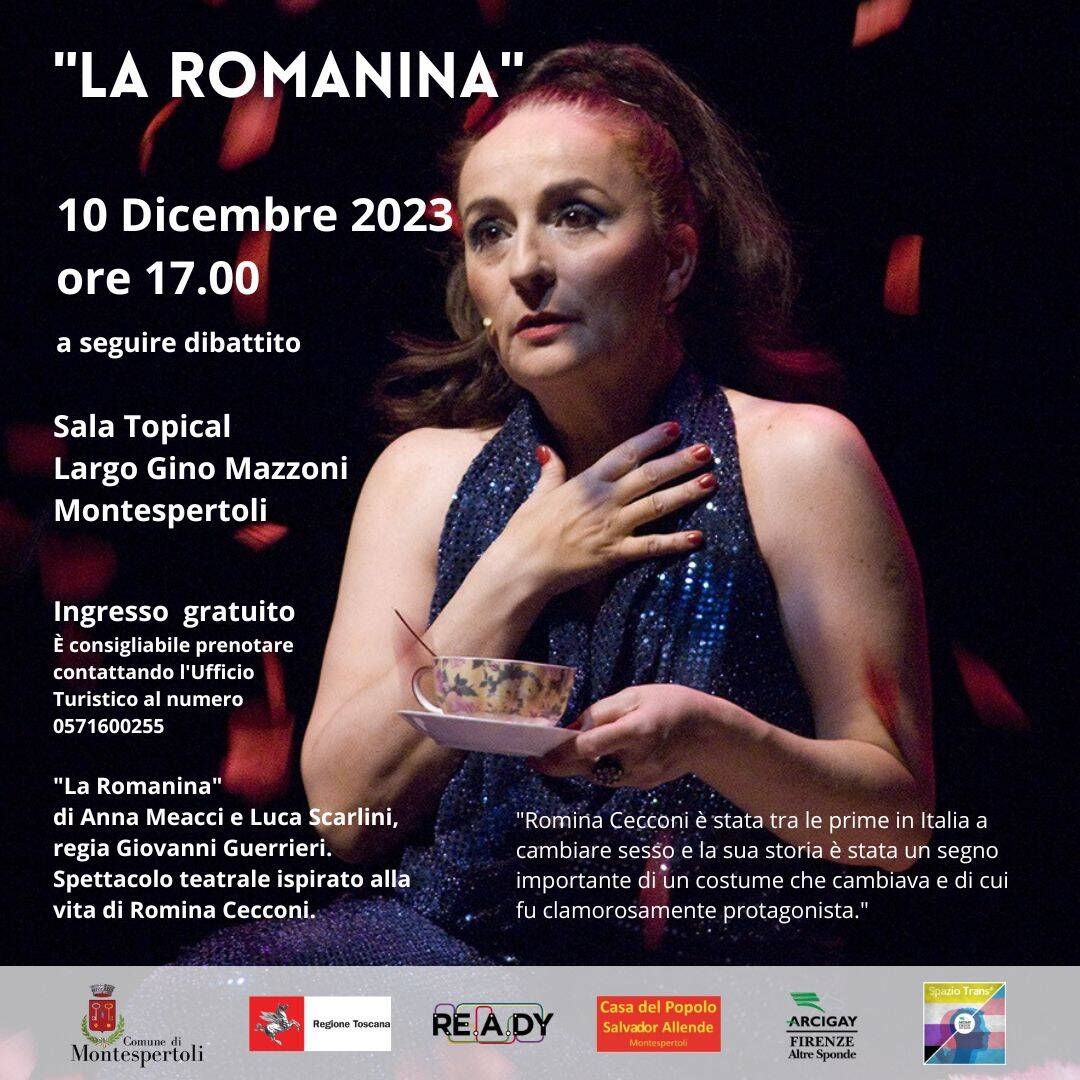 "La Romanina", uno spettacolo teatrale affascinante che porta in scena la vita di Romina Cecconi approda a Montespertoli. La rappresentazione, diretta con maestria da Giovanni Guerrieri, avrà luogo il 10 Dicembre 2023, alle ore 17:00 presso la Sala Topical, Largo Gino Mazzoni, Montespertoli.