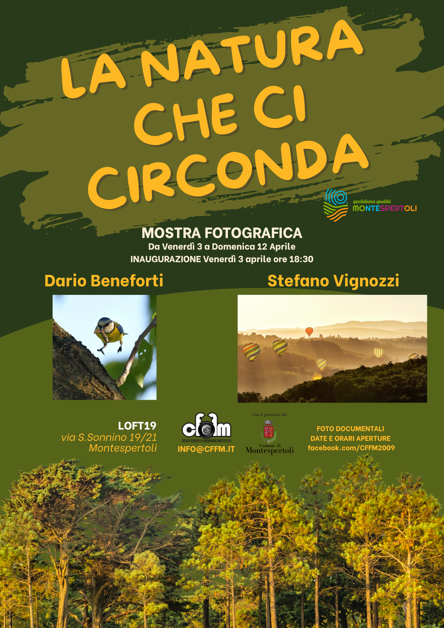 Dario Beneforti e Stefano Vignozzi allestiscono al LOFT19 una mostra fotografica piena di passione visiva e chilometri a piedi "sul campo" dedicata alla NATURA che ci circonda. Flora, Fauna e Paesaggi che mostrano con tecnica e punti di vista unici quanta bellezza abbiamo a disposizione intorno a noi, qualcosa che sfugge nelle frenetiche corse giornaliere spesso fini a se stesse ma che invece può regalare serenità spirituale e grazia al cuore.