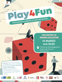 Il Comune di Montespertoli ospiterà martedì 10 marzo alle ore 18:00, nella Sala del Consiglio del Palazzo Comunale (Piazza del Popolo 1), un incontro di sensibilizzazione dedicato ai rischi legati al gioco d’azzardo e alle dipendenze comportamentali, promosso nell’ambito del progetto Play4Fun, iniziativa che promuove scelte consapevoli e offre sostegno a chi vive situazioni di rischio legate all’azzardo attraverso attività di informazione sul territorio, nelle scuole e nei luoghi di lavoro.
