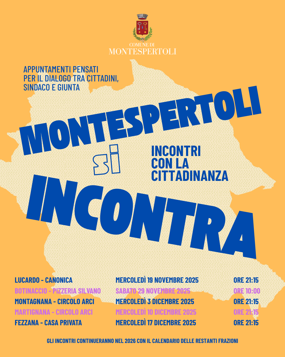 Dall’inizio dell’anno 2026 gli incontri continueranno e saranno comunicate le date delle serate in tutte le altre frazioni con la serata conclusiva nel capoluogo.
