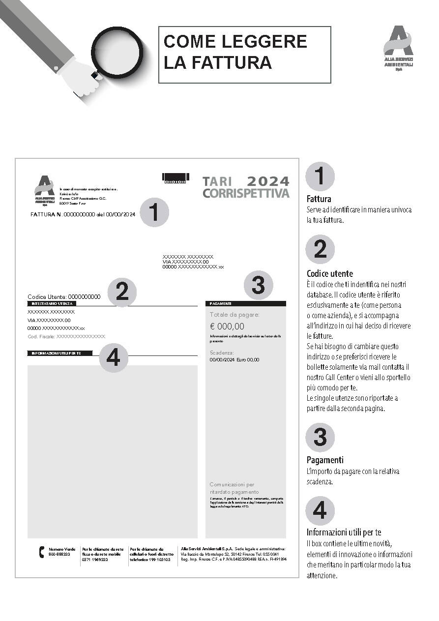 Entro la fine di agosto 2024, i residenti di Montespertoli riceveranno la prima bolletta cartacea relativa alla Tariffa Corrispettiva (TARIC). Questa bolletta conterrà tutte le informazioni essenziali, inclusi i dettagli delle varie voci che compongono il totale da pagare. La fattura è semestrale e copre quindi i primi sei mesi dell’anno, ai fini del calcolo della percentuale di raccolta differenziata sono stati conteggiati i conferimento dei soli mesi di aprile, maggio e giugno visto che all’inizio dell’anno non tutti gli utenti si erano dotati in tempo dei nuovi contenitori con tag.