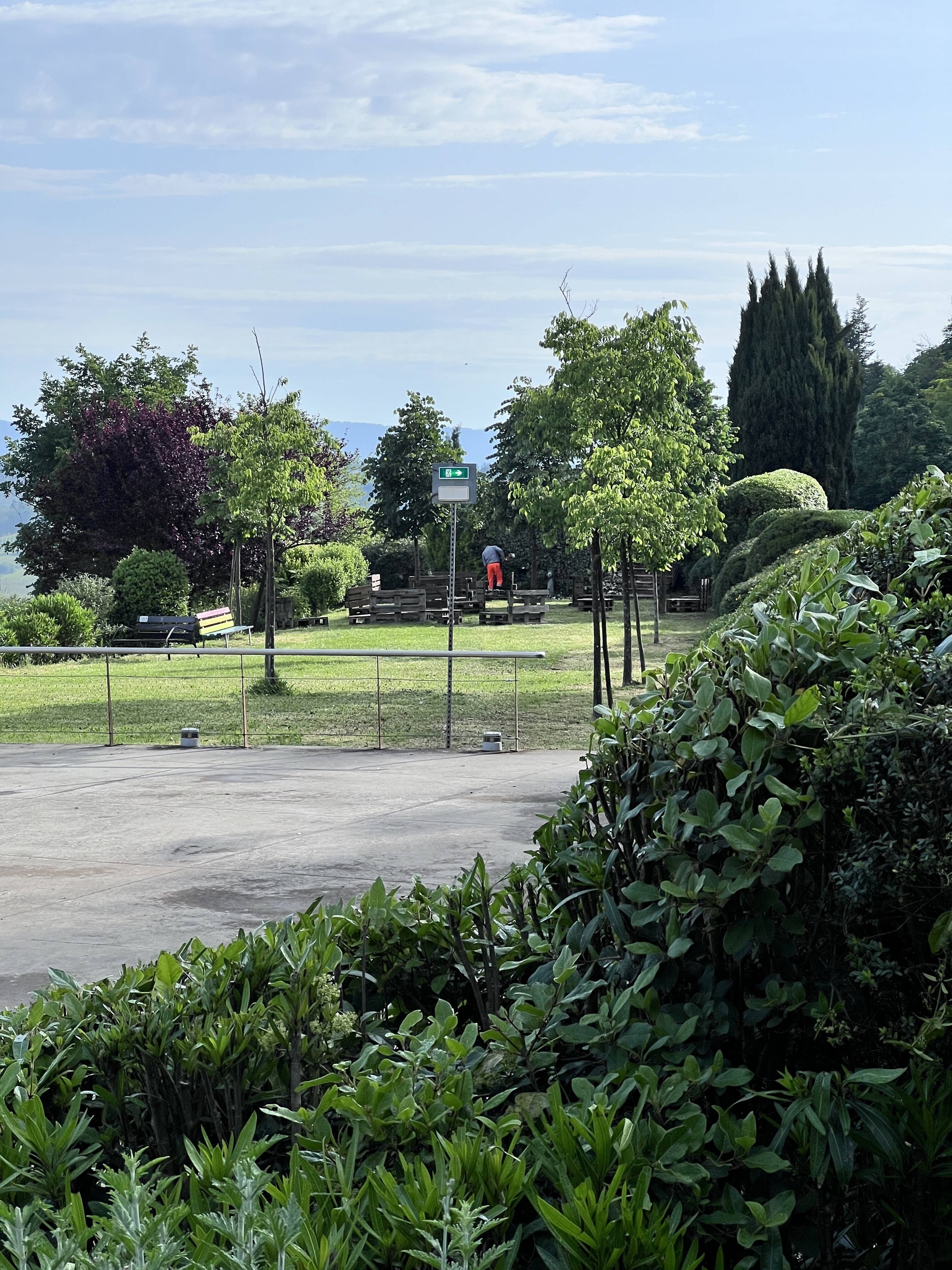1. L’area verde del parco urbano tra la terrazza di fronte al bar, la pista da ballo e i terrazzamenti inferiori (escluso il bordo strada).