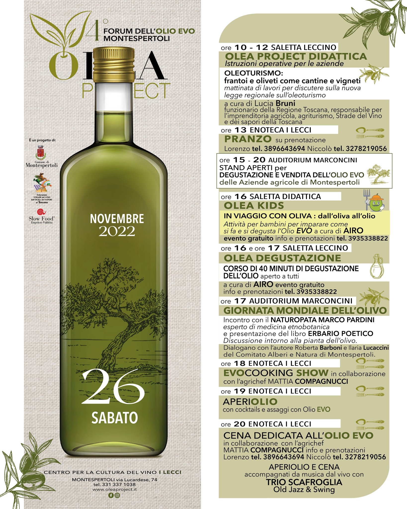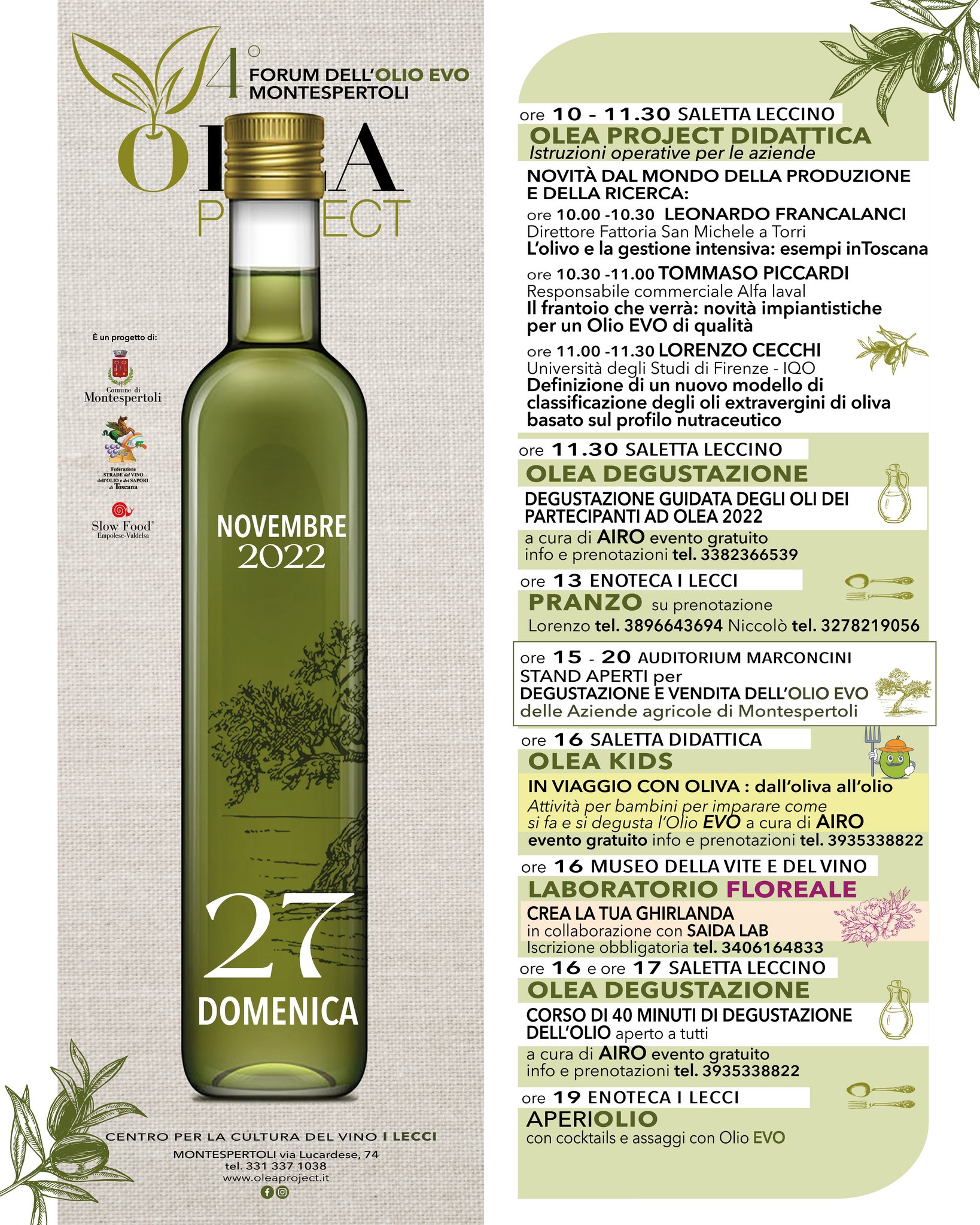 É possibile scoprire il programma nel dettaglio sulla pagina facebook Olea Montespertoli.
