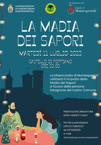 "La Madia dei Sapori" è infatti un evento che unisce la passione per il buon cibo, l’amore per il proprio territorio e il desiderio di fare del bene. L'evento sarà corredato da un sottofondo musicale ed è necessaria la prenotazione. La Misericordia invita tutti coloro che desiderano partecipare a questa straordinaria serata a prenotare i loro posti al più presto possibile tramite l’Ufficio Turistico al numero: 0571.600255 oppure scrivendo una e-mail a ufficioturistico@comune.montespertoli.fi.it