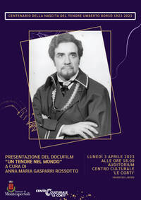 Al Centro Culturale "Le Corti" lunedì 3 aprile sarà proiettato un docufilm alle ore 18:00, realizzato dalla stessa signora Gasparri Rossotto, dal titolo "Un tenore nel mondo".