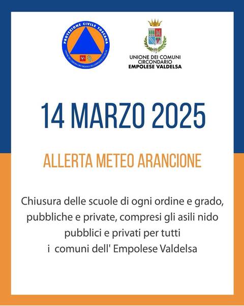Chiusura delle scuole di ogni ordine e grado, pubbliche e private, compresi gli asili nido pubblici e privati per tutti i comuni dell’Empolese Valdelsa