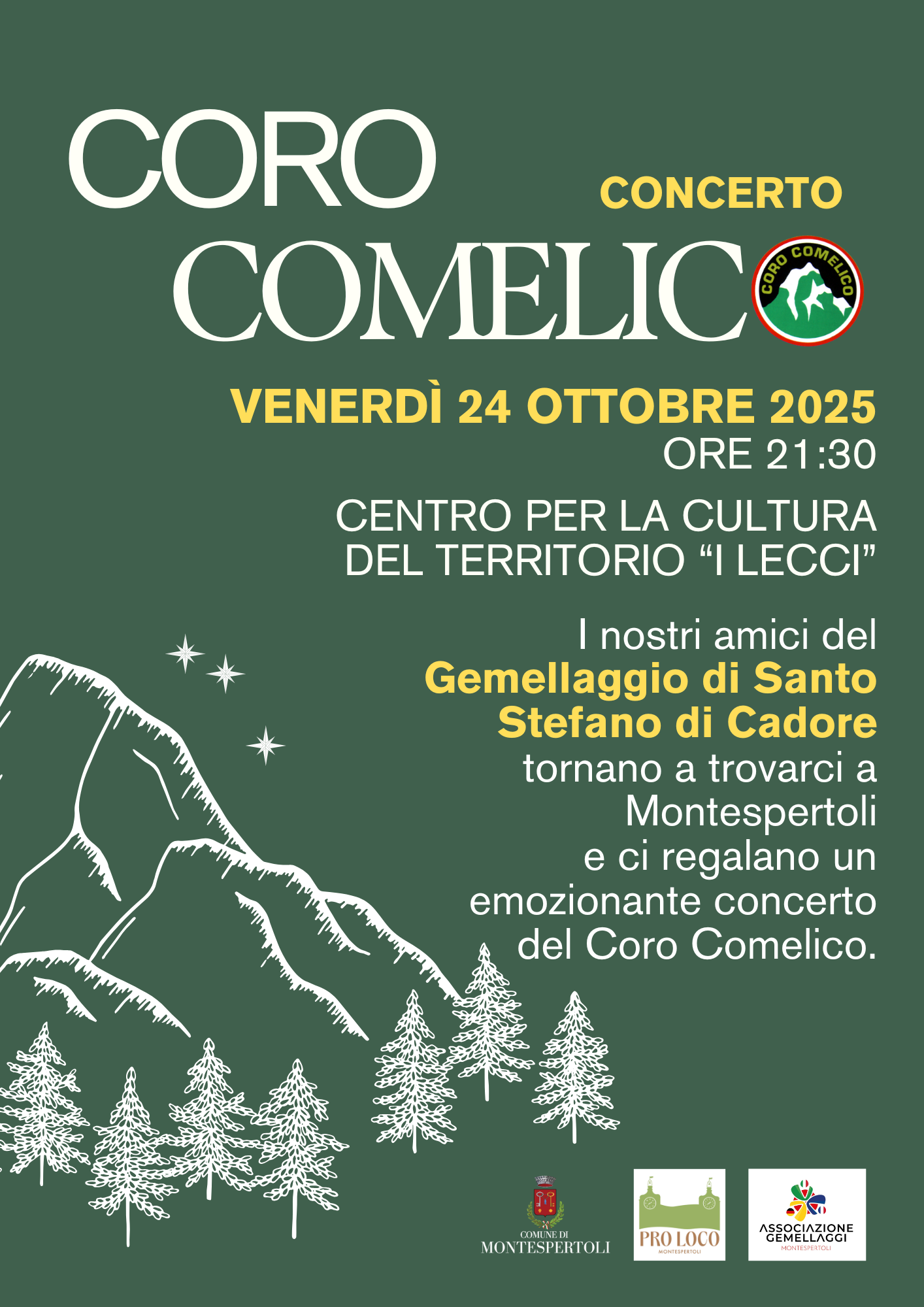 Un evento all’insegna della musica, dell’amicizia e della tradizione corale: venerdì 24 ottobre, alle ore 21:30, il Centro per la cultura del territorio “I Lecci” ospiterà il Coro Comelico di Santo Stefano di Cadore (BL), protagonista di un concerto che celebra il legame tra due comunità unite da un forte rapporto di gemellaggio.
