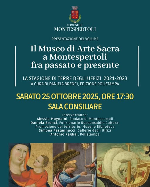 Illegame tra Montespertoli e Le Gallerie degli Uffizi si rinnova con la presentazione del volume “Il Museo di Arte Sacra a Montespertoli fra passato e presente”, in programma sabato 25 ottobre 2025 alle ore 17:30 presso la Sala Consiliare del Comune di Montespertoli.