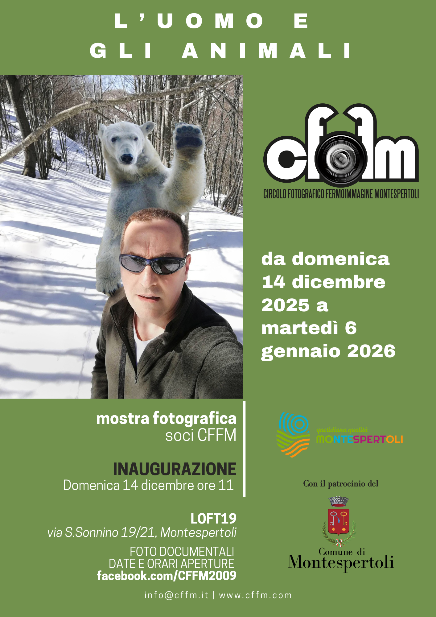 Il Circolo Fotografico Fermoimmagine (CFFM) presenta “L’Uomo e gli Animali”, una mostra collettiva che esplora il rapporto profondo e quotidiano tra esseri umani e mondo animale. Gli scatti realizzati dai soci del circolo raccontano momenti autentici di simbiosi e condivisione, offrendo al visitatore un viaggio visivo ricco di emozioni e situazioni reali colte in libertà.