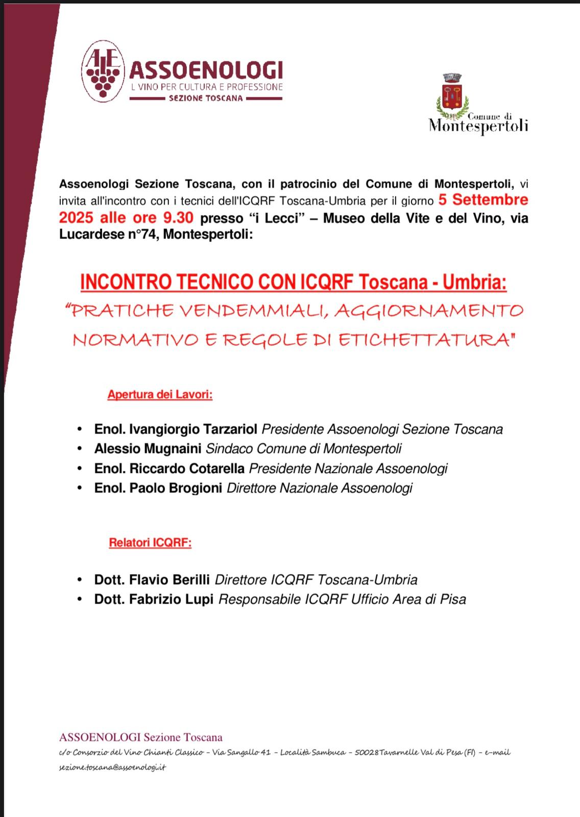 A guidare la parte tecnica saranno i relatori dell’ICQRF Toscana-Umbria: