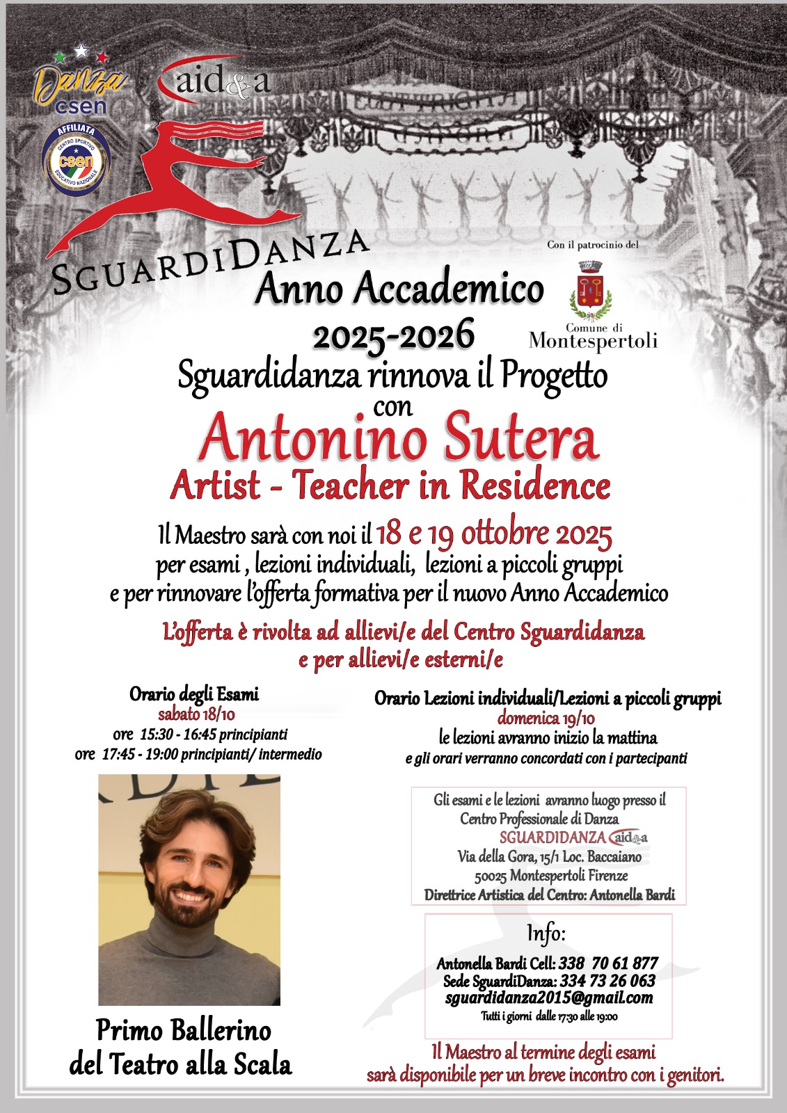 Per l’anno accademico 2025–2026, il Centro Professionale di Danza SguardiDanza di Montespertoli rinnova la collaborazione con Antonino Sutera, Primo ballerino del Teatro alla Scala, che torna come Artist – Teacher in Residence.